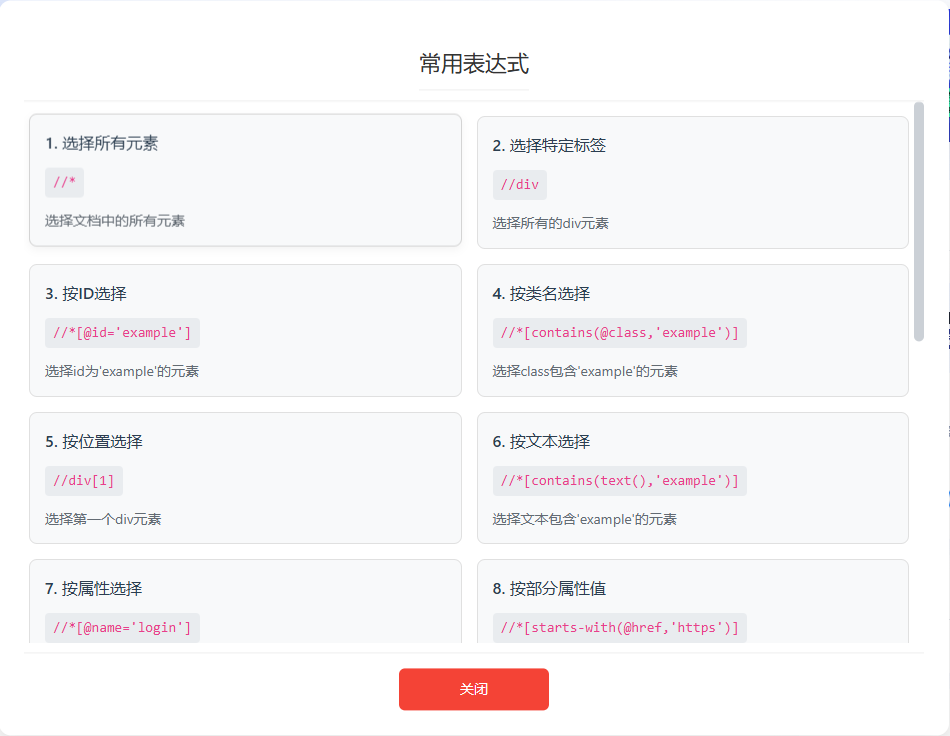 2.增加XPath常用表达式文档,在面板中点击按钮即可查看复制